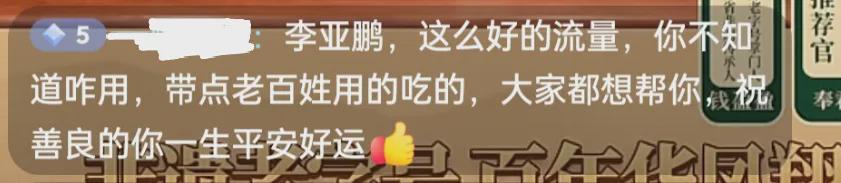 说来说去,就是李亚鹏提供的实用产品实在太少,不会用流量,让人无处下手,所以有网友急到让李亚鹏别卖货了,还是直接给他捐款。从李亚鹏和网友的态度能看出来,这是大家双向奔赴的一场善意,但在对接过程中有较大的容差,李亚鹏完全接不住网友的善意,说狠点就是有些浪费大家的热情。