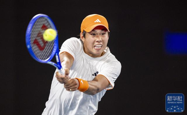 ↑ 勒纳·钱在比赛中回球。
